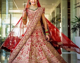 Timeless red and white indian wedding lenghas. Embroidered barat day red bridal lehenga choli is highly embellished velvet patch border is framing the lehenga. Loved lehenga has been designed to create an online community where users can buy and sell preowned asian fashion. The zari work designer choli sits perfectly on top of the double layered silk lehenga that has heavy but scattered zari work and a patch border. With a matching dupatta that follows a similar design pattern, this dress makes for an ideal sangeet dress. Here are some of the most common reasons why modern brides opt for red wedding dresses: See more ideas about red lehenga, bridal lehenga, indian bridal. You will find a nice range of wedding lehengas with magnificent embroidery, beautiful zari, mirror work and other such embellishments. The amount of preparation and planning that goes into an indian wedding dresses is massive, even though the actual wedding ceremonies seem to pass in a blink. Entdecke neue styles für deinen kleiderschrank. Red velvet a line lehenga. Skyview indian wear designer party pakistani lehenga bollywood wedding ethnic dress lengha choli. The history and meaning of the red bridal lehenga.